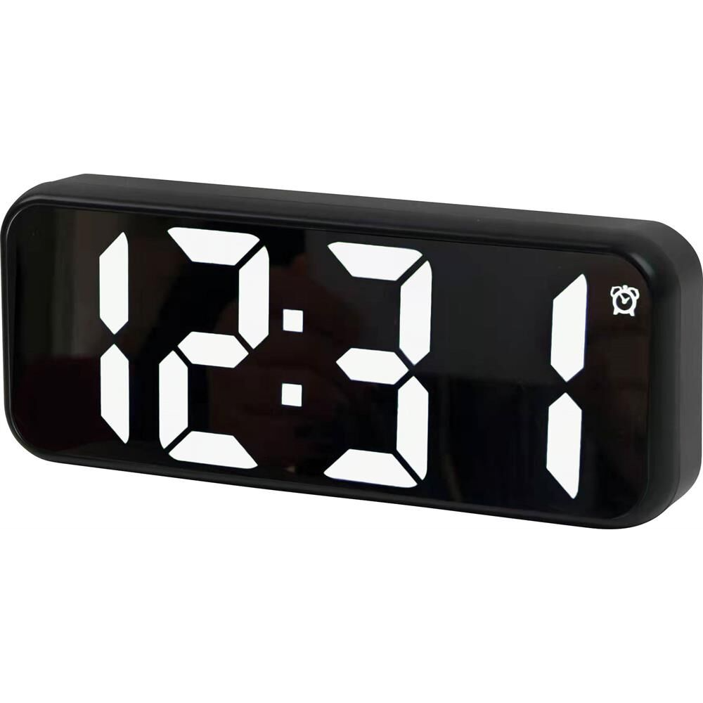 Электронные часы с LED дисплеем, Яркая светодиодная подсветка дисплея - белая, Зеркальная поверхность, 12/24 формат времени, Измерение температуры внутри помещения C/F, Ночной режим подсветки с 18-00 до 6-00, Ручная регулировка яркости - 2 режима, Будильник с режимом повтора от 5-60 мин, Программируемый будильник по дням недели, Календарь, Питание USB (кабель в комплекте), 3 батарейки типа ААА для сохранения настроек