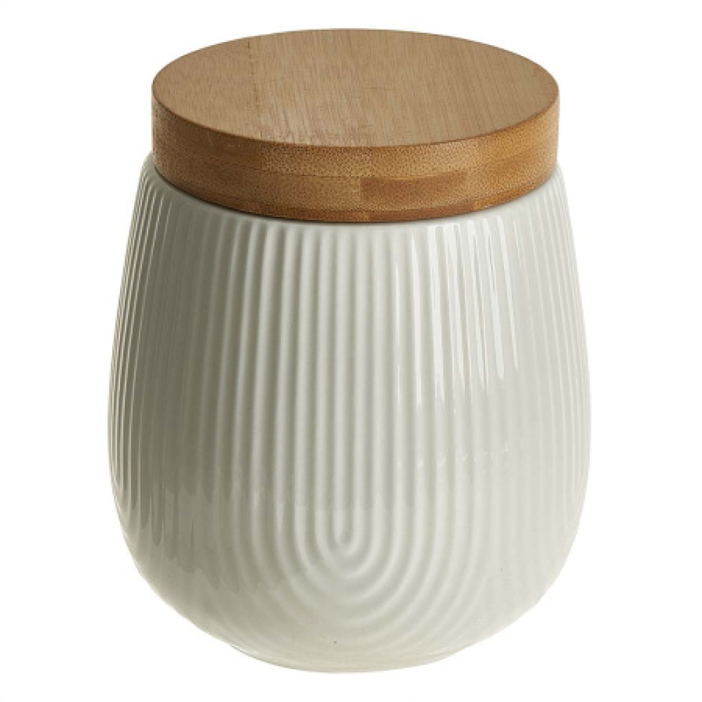 - Банка для сыпучих продуктов фарфоровая с бамбуковой крышкой