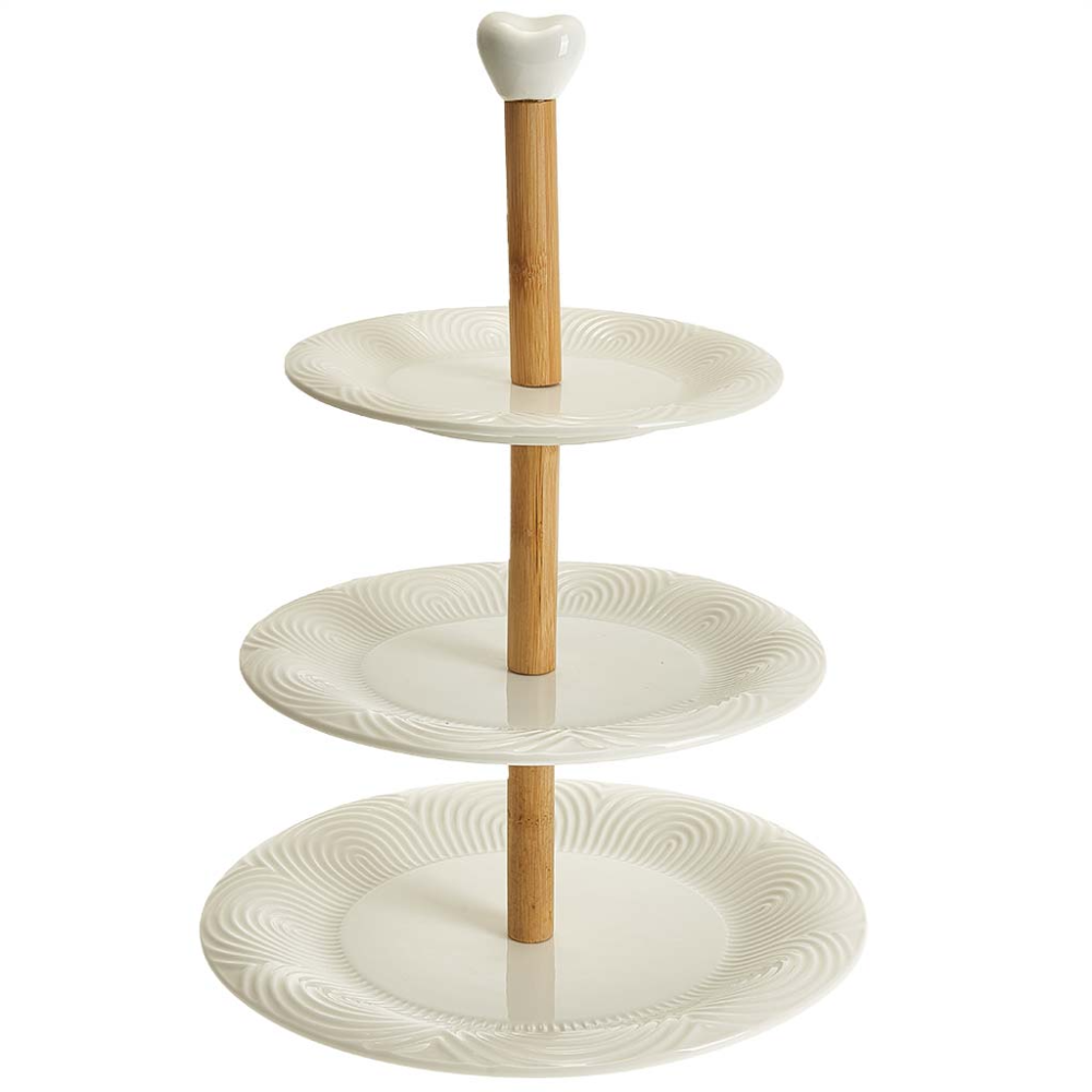 - Этажерка 3-х ярусная фарфоровая с бамбуковым стержнем