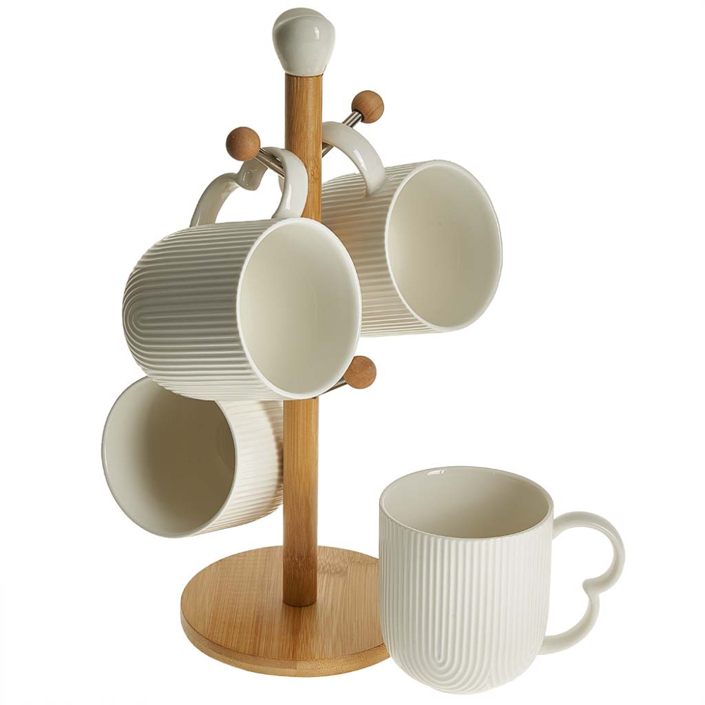 Набор из 4 кружек на бамбуковой подставке AK1-0037 SCANDI
