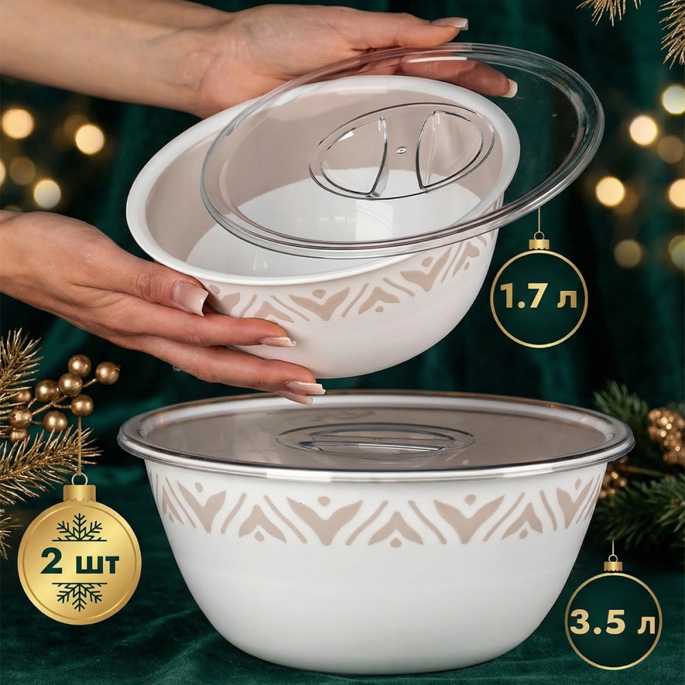 Набор чаш (1,7л + 3,5л) с крышкой ЭСТЕТИКА М8750 БЕЛО/БЕЖЕВЫЙ