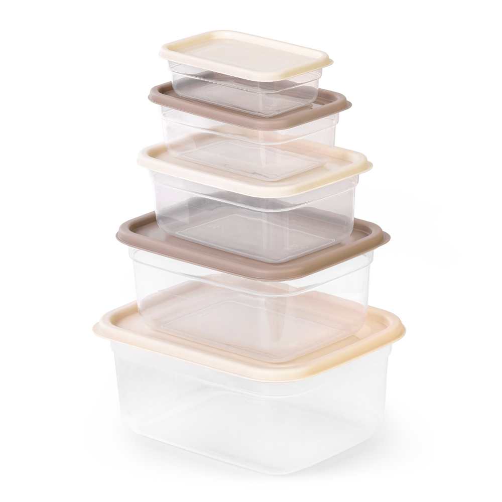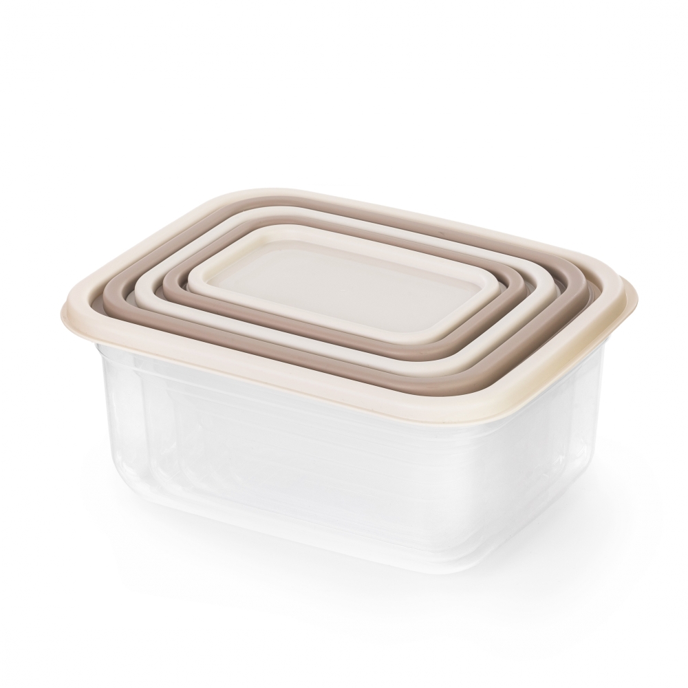 Практичные пищевые контейнеры для хранения и транспортировки салатов, вторых блюд, закусок, бакалеи и мелочей. Удобная прямоугольная форма с закруглёнными углами, крышки с язычками для лёгкого открывания. Благодаря системе «матрёшка» контейнеры и крышки компактно складываются, экономя пространство.