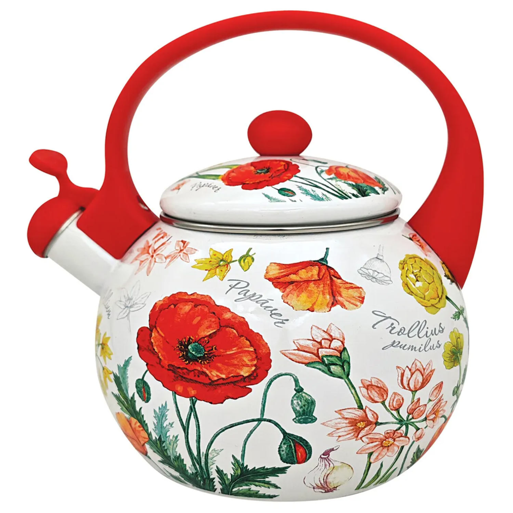Чайник со свистком Appetite «Алые Цветы» 2,0 л FT7-RF — функциональный кухонный аксессуар.