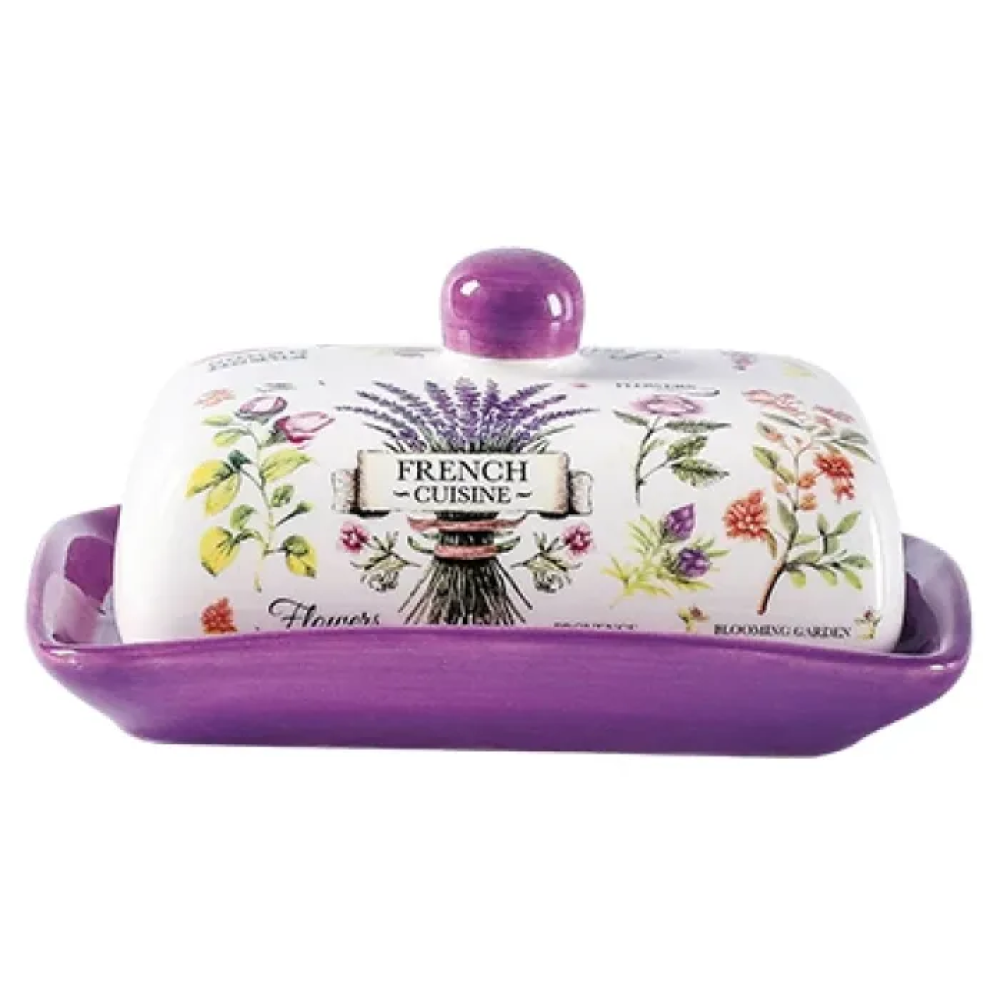 Масленка выполнена из качественной керамики, что придает ей прочность и устойчивость к внешним воздействиям. Она рассчитана на хранение до 200 г масла, что делает её практичным выбором для ежедневного использования. Легко моется с применением нейтральных моющих средств.