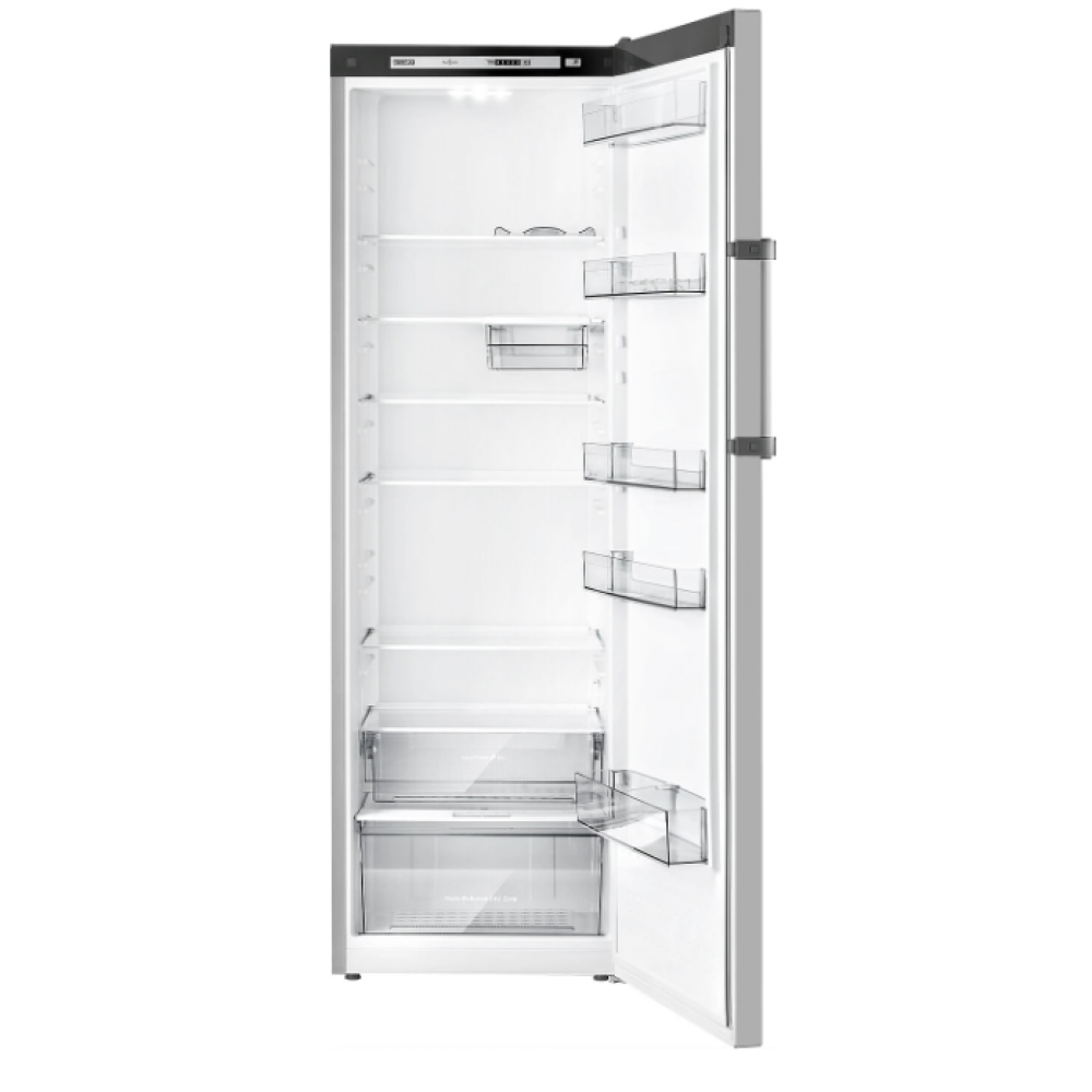 - на двери установлено 5 ёмкостей из ударопрочного пластика, в том числе ёмкость нижняя с ограничителем для бутылок и ёмкость верхняя с крышкой.