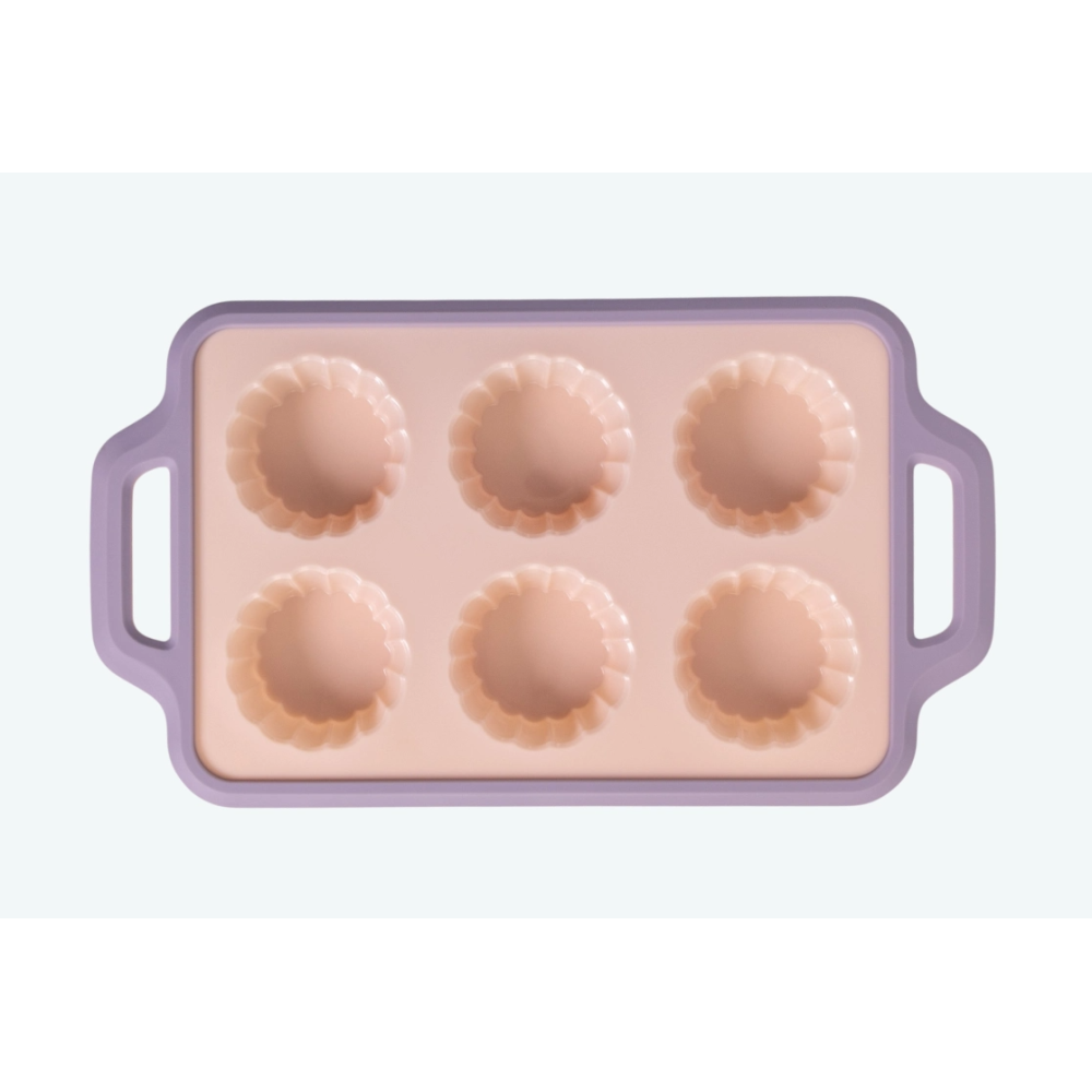 Силиконовая форма AURORA 34×19,5×3 см с шестью ячейками подходит для приготовления маффинов, кексов и порционных закусок. Металлическая рамка сохраняет форму даже при заполнении жидким тестом и упрощает перенос. Пищевой силикон не пригорает, не впитывает запахи и обеспечивает лёгкое извлечение выпечки. Материал выдерживает температуру до 220 °C, подходит для духовки, холодильника и морозильной камеры. Можно мыть вручную или в посудомоечной машине.