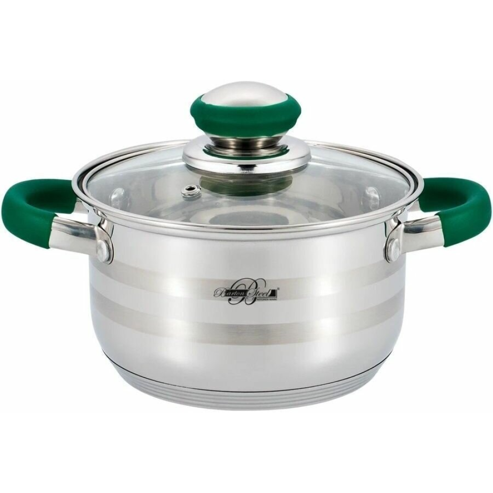 Кастрюля Barton Steel BS 2800-20 green BS — это модель из нержавеющей стали объёмом 3,5 литра со стеклянной крышкой зеленого цвета.