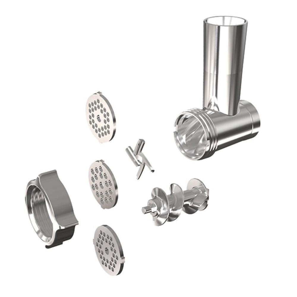 Мясорубка, насадка для кеббе, насадка для колбасок, руководство по эксплуатации, гарантийный талон, толкатель мясорубки, шнек мясорубки