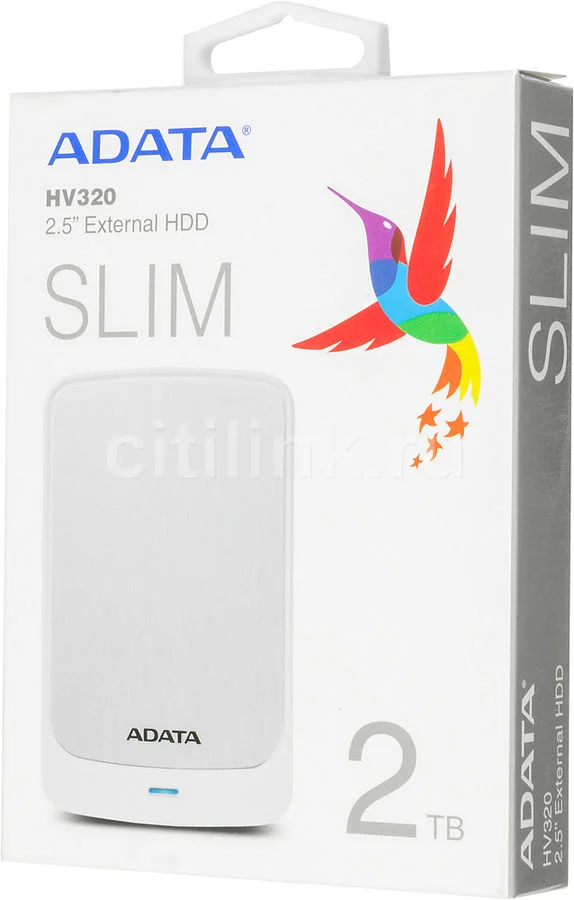Внешний жесткий диск A-DATA HV320, помимо большого объема, также может похвастаться стильным и лаконичным исполнением. Он выполнен в белом цвете, поэтому подойдет и для бытового, и для делового использования. Ну, а размеры рассматриваемого девайса таковы, что его с легкостью можно брать с собой куда угодно. При этом небольшой вес позволит не переживать по поводу лишней нагрузки в сумке.