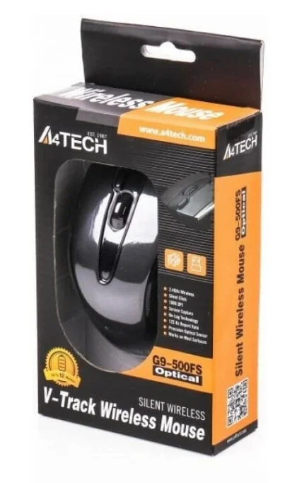 Производитель предлагает мышь A4 V-Track G9-500FS для использования правой рукой. Питание осуществляется от батарей АА, а одной пары хватает на 12 месяцев работы. Модель выполнена в черном цвете.