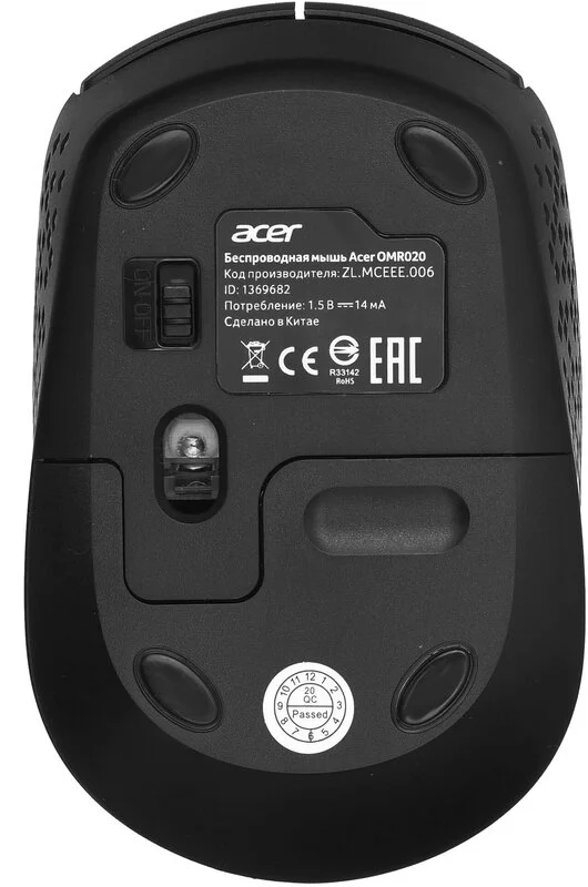 Мышь Acer OMR020 черный, оптическая, разрешение сенсора 1200dpi, для ноутбука, беспроводная, кнопок: 3, подходит для правой и левой руки (ZL. MCEEE.006)