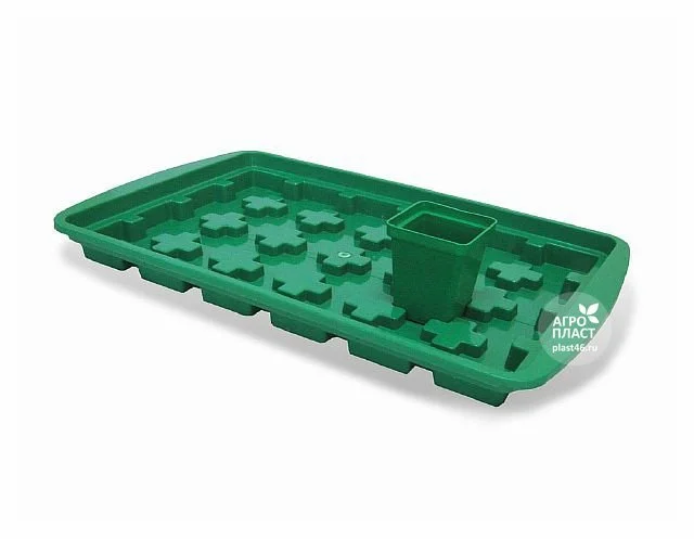 Идеален для рассады. Внутри каждого стаканчика для удобства выемки рассады имеется выдвижное дно. Стаканчики имеют дренаж. Поддон с выемкой для каждого стаканчика. Так же применяется для выращивания кактусов.