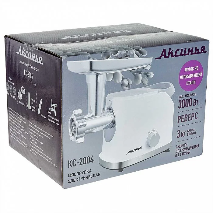 Мясорубка электрическая 3000 Вт, 3 кг/мин АКСИНЬЯ КС-2004 белая, лоток из нержавеющей стали