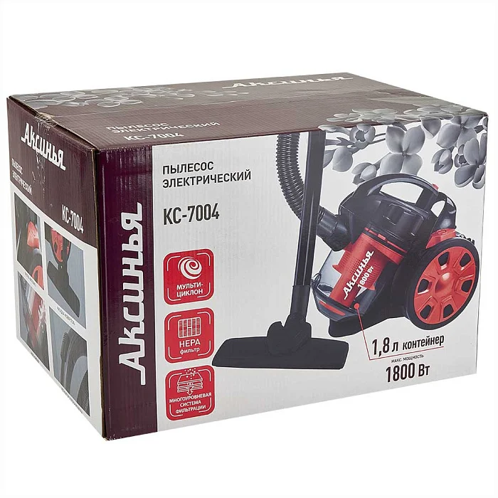 Пылесос без мешка для сбора пыли МУЛЬТИЦИКЛОН 1800 Вт АКСИНЬЯ КС-7004 черный с красным