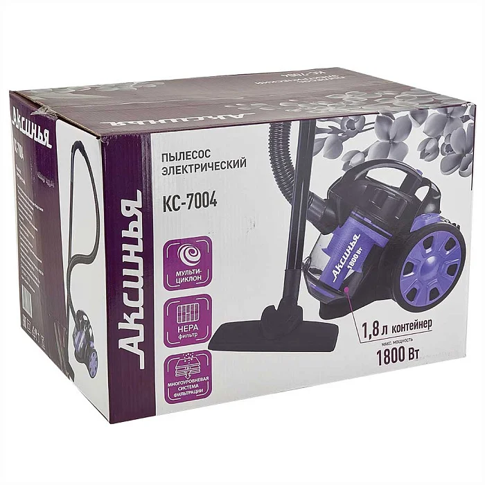 Пылесос без мешка для сбора пыли МУЛЬТИЦИКЛОН 1800 Вт АКСИНЬЯ КС-7004 черный с сиреневым