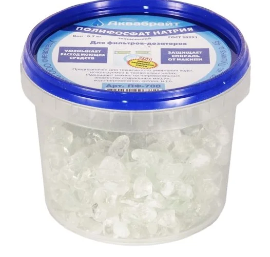 Полифосфат натрия предназначен для технического умягчения воды, используется в технических целях. Уменьшает накипь на нагревательных элементах стиральных машин, водонагревателях, котлов и т.п.
