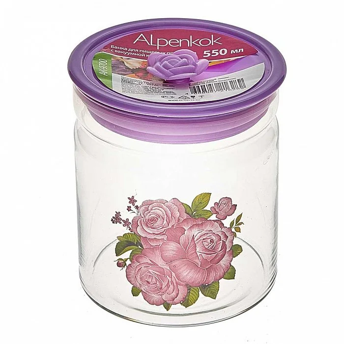 Судочки, банки, контейнеры, емкости » ALPENKOK Банка 550 мл стеклянная с вакуумной крышкой Роза AK-9700 Банка 550 мл стеклянная с вакуумной крышкой Роза ALPENKOK AK-9700 Производитель: ALPENKOKМатериал: стеклоОбъем: 0-0.9Тип: банкаНаличие: Нет в наличииБонусы: 6 ₽ Код товара: 24371 нет в наличии Описание Параметры Объем 550 мл Описание Банка для пищевых продуктов из жаропрочного стекла с декором Декор: Роза Банка надежно закрывается пластиковой крышкой, которая снабжена силиконовым уплотнителем для лучшей фиксации Поделитесь ссылкой:
