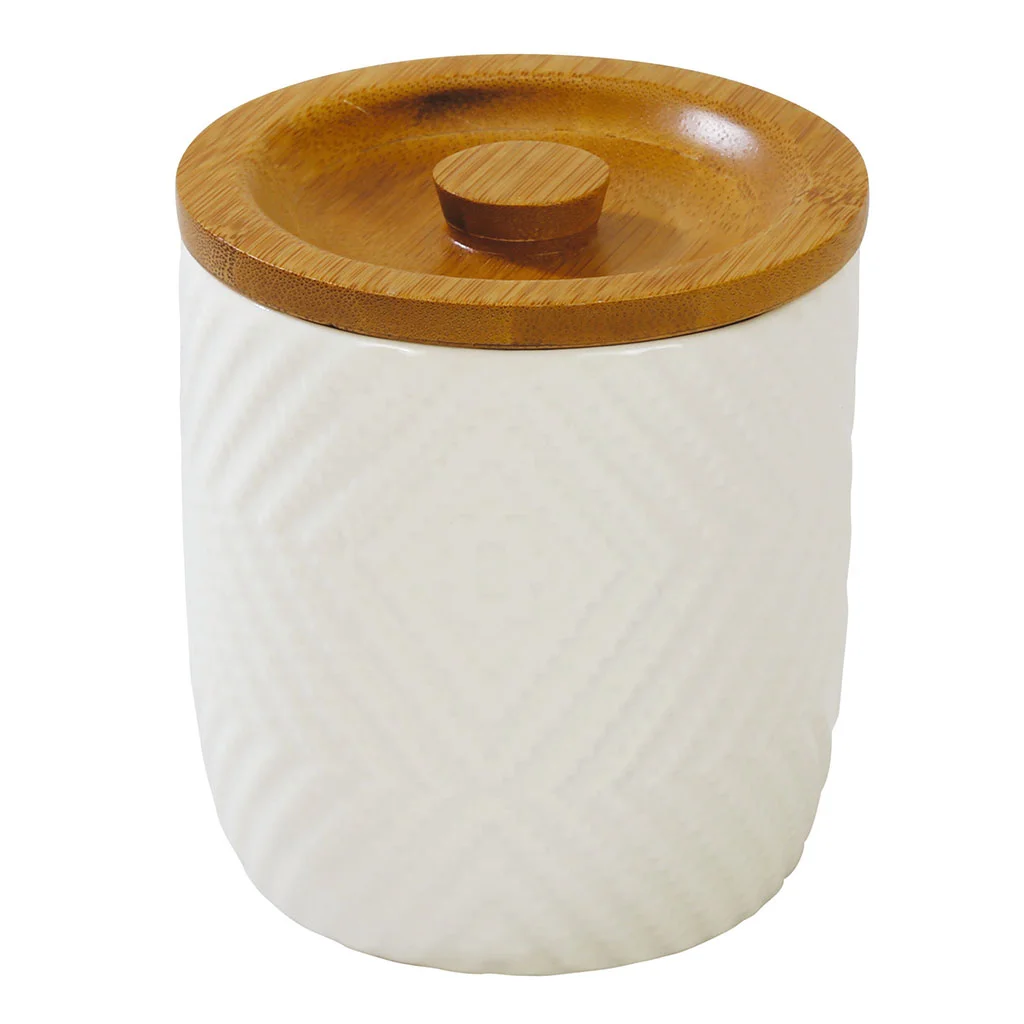 - Банка для сыпучих продуктов 500 мл фарфоровая с бамбуковой крышкой
