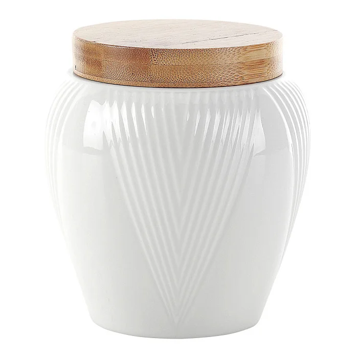 - Банка для сыпучих продуктов фарфоровая с бамбуковой крышкой