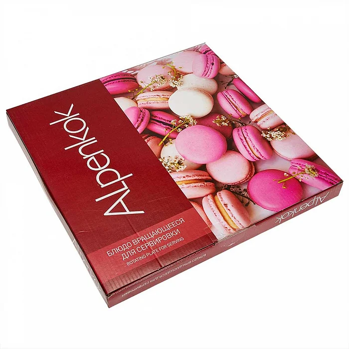 - Изделие идеально подойдет для сервировки не только торта и десертов, но и различных закусок, а также может использоваться как поворотный стол для декорирования