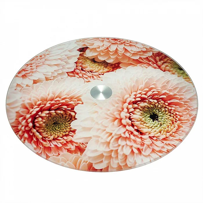 - Блюдо вращающееся изготовлено из термостойкого стекла с декоративным покрытием и металла