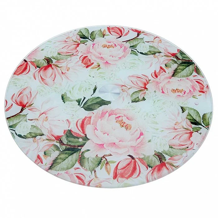 - Блюдо вращающееся изготовлено из термостойкого стекла с декоративным покрытием и металла