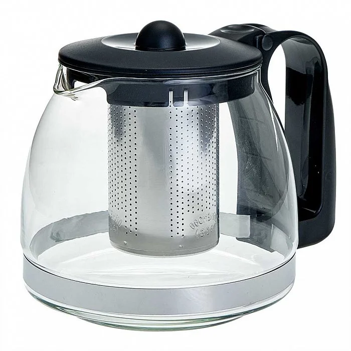 - Заварочный чайник изготовлен из термостойкого стекла