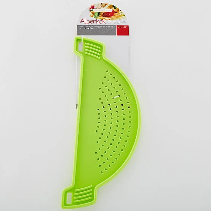Сито, дуршлаги » ALPENKOK Крышка-дуршлаг для слива воды из кастрюли 18,5х10см АК-18Р Крышка-дуршлаг для слива воды из кастрюли 18,5х10см ALPENKOK АК-18Р Производитель: ALPENKOKТип: дуршлагНаличие: Нет в наличииБонусы: 2 ₽ Код товара: 27384 нет в наличии Описание Параметры Размеры 18,5х10см Описание С помощью этого приспособления можно удобно слить из кастрюли воду от макарон и других продуктов, отделить компот от ягод и т.п. Материал: пластик Упаковка: цветная картонная подвеска Поделитесь ссылкой: