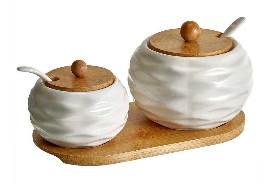 Набор из 2 банок (250 мл и 450 мл) с ложками на бамбуковой подставке AK5-0006