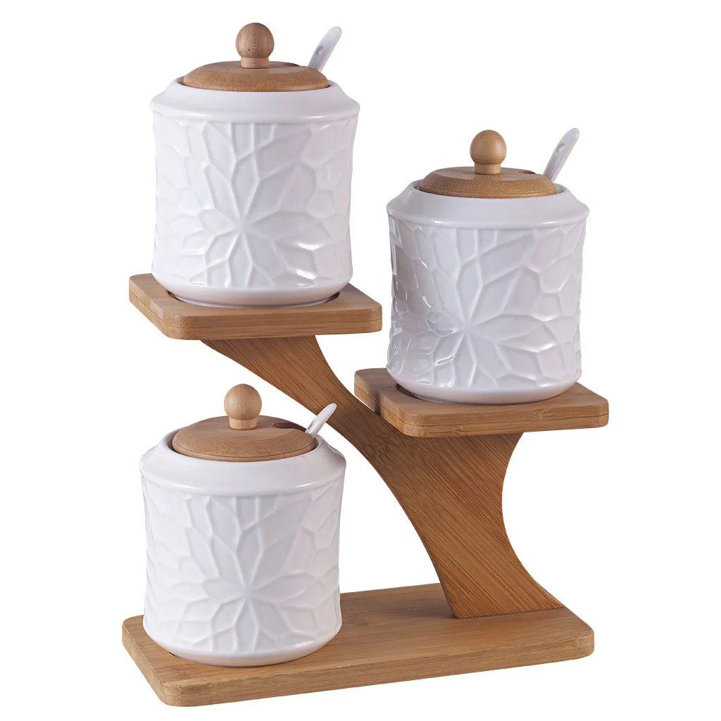 Набор из 3 банок (360 мл) с ложками на бамбуковой подставке AK1-0018 KRISPY