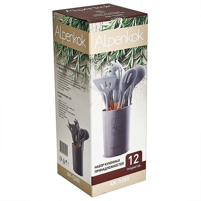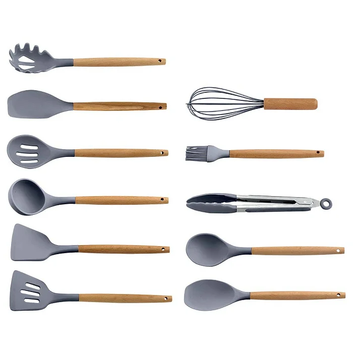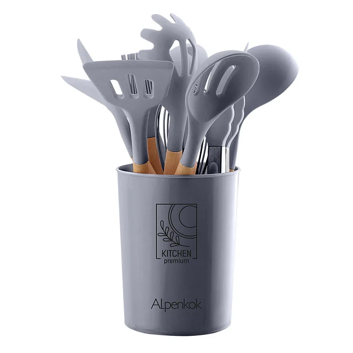 Набор кухонных принадлежностей на подставке 12 предметов (силикон) АК-5280 серый