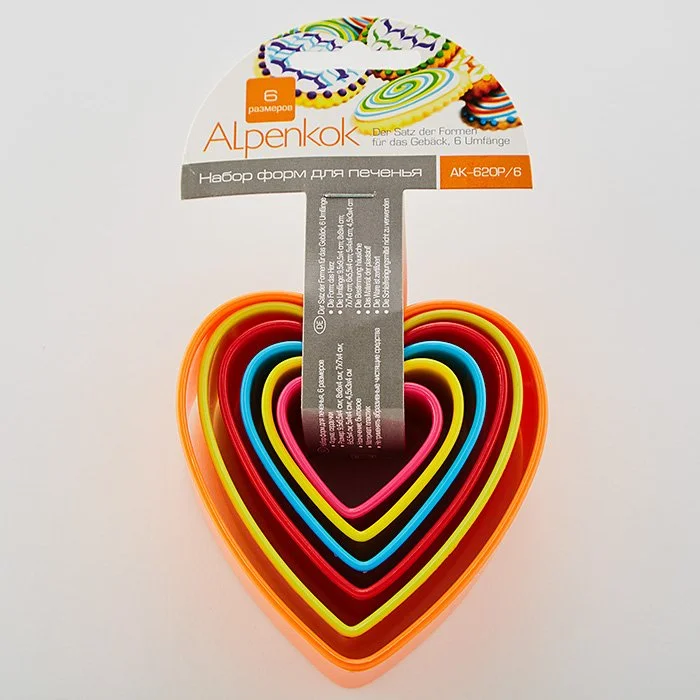 Набор пластиковых форм для печенья 6 размеров Сердечки ALPENKOK АК-620Р/6
