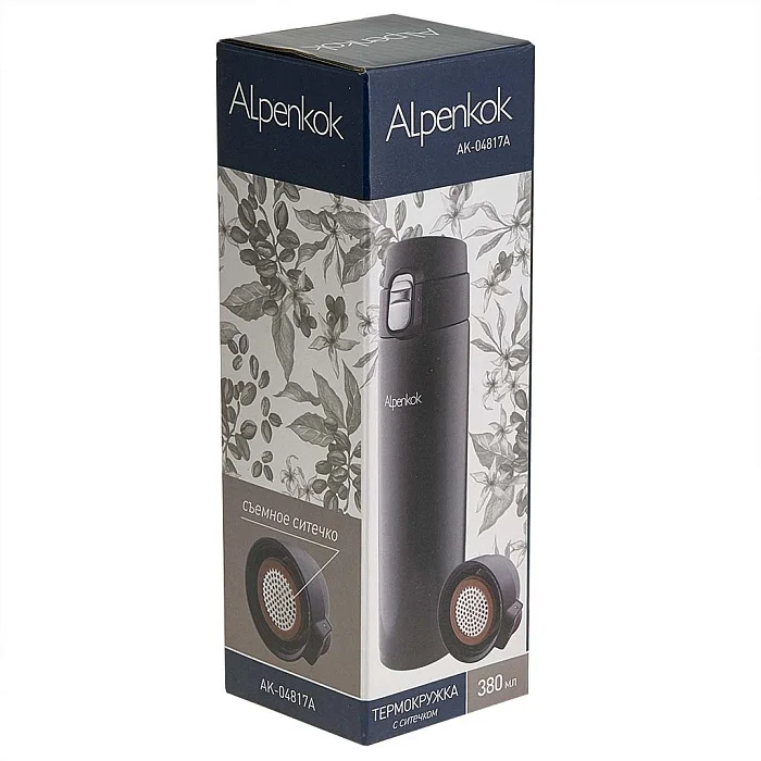 Термокружка вакуумная 380 мл со съемным ситечком ALPENKOK AK-04817A черная