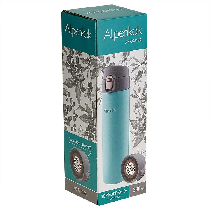 Термокружка вакуумная 380 мл со съемным ситечком ALPENKOK AK-04818A бирюзовая