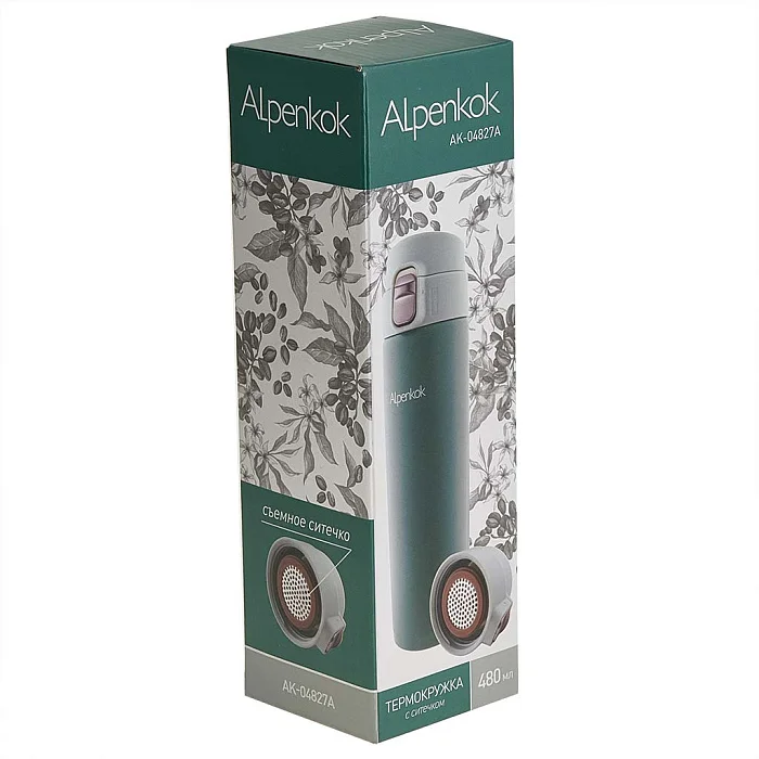 Термокружка вакуумная 480 мл со съемным ситечком ALPENKOK AK-04827A зеленая