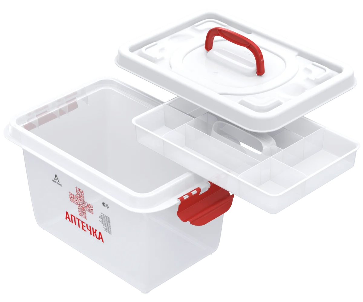 Бокс помогает навести порядок и рассортировать мелкие предметы. В него с лёгкостью поместится автомобильная аптечка, витамины, пластыри и другие лекарстка. Бокс закрывается защёлками, его просто перенести с места на место. Разложить пластыри и часто используемые лекарства легко во вкладыше, они не потеряются и к ним у вас всегда будет быстрый доступ.