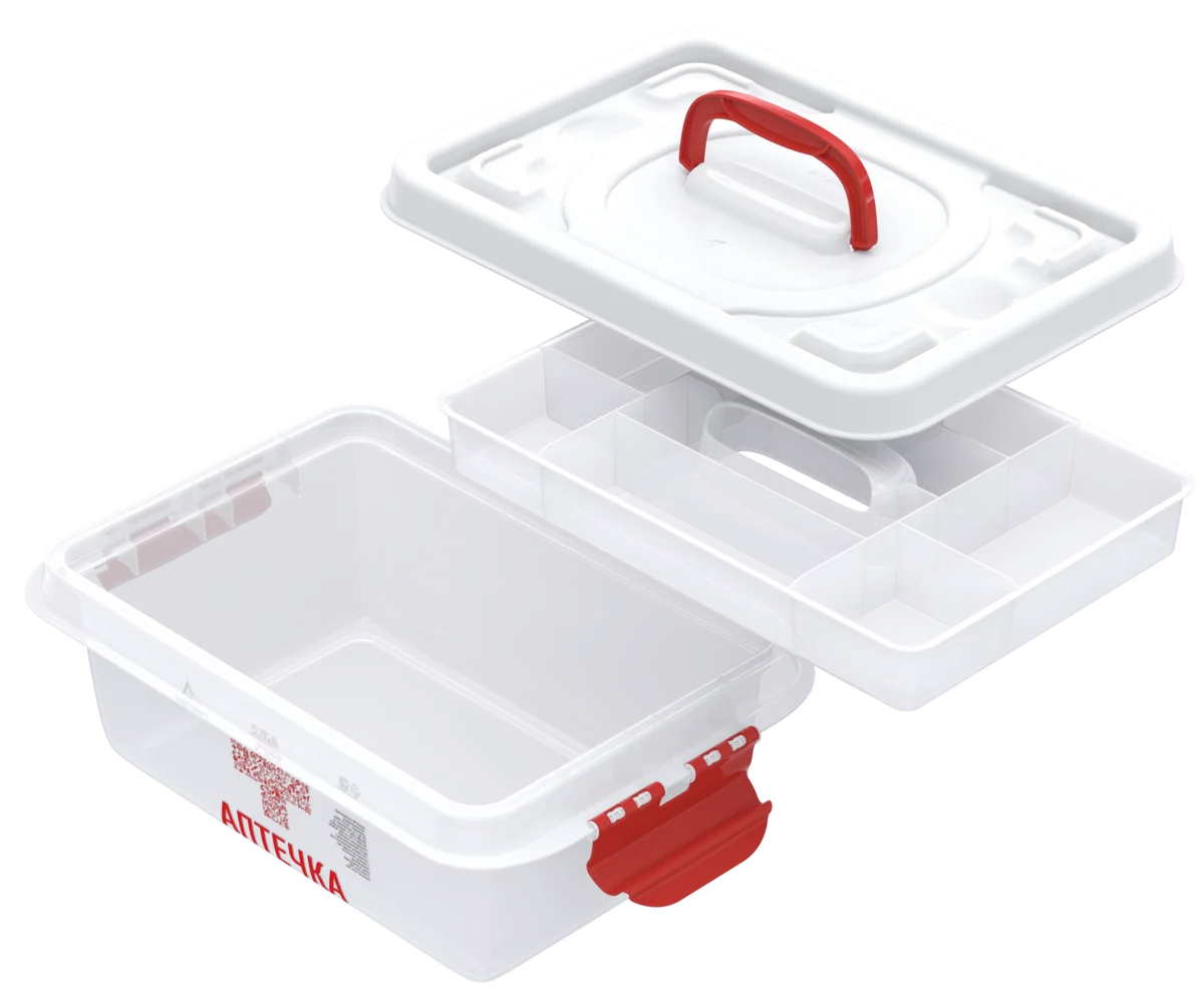 Бокс помогает навести порядок и рассортировать мелкие предметы. В него с лёгкостью поместится автомобильная аптечка, витамины, пластыри и другие лекарстка. Бокс закрывается защёлками, его просто перенести с места на место. Разложить пластыри и часто используемые лекарства легко во вкладыше, они не потеряются и к ним у вас всегда будет быстрый доступ.