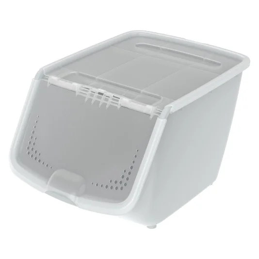 Контейнер для хранения овощей, фруктов и других продуктов на полке в шкафу или на балконе. На крышке контейнера отверстия с системой вентиляции воздуха, чтобы продукты дольше сохраняли свежесть. Контейнер выполнен из пищевого пластика - прочный и легкий.