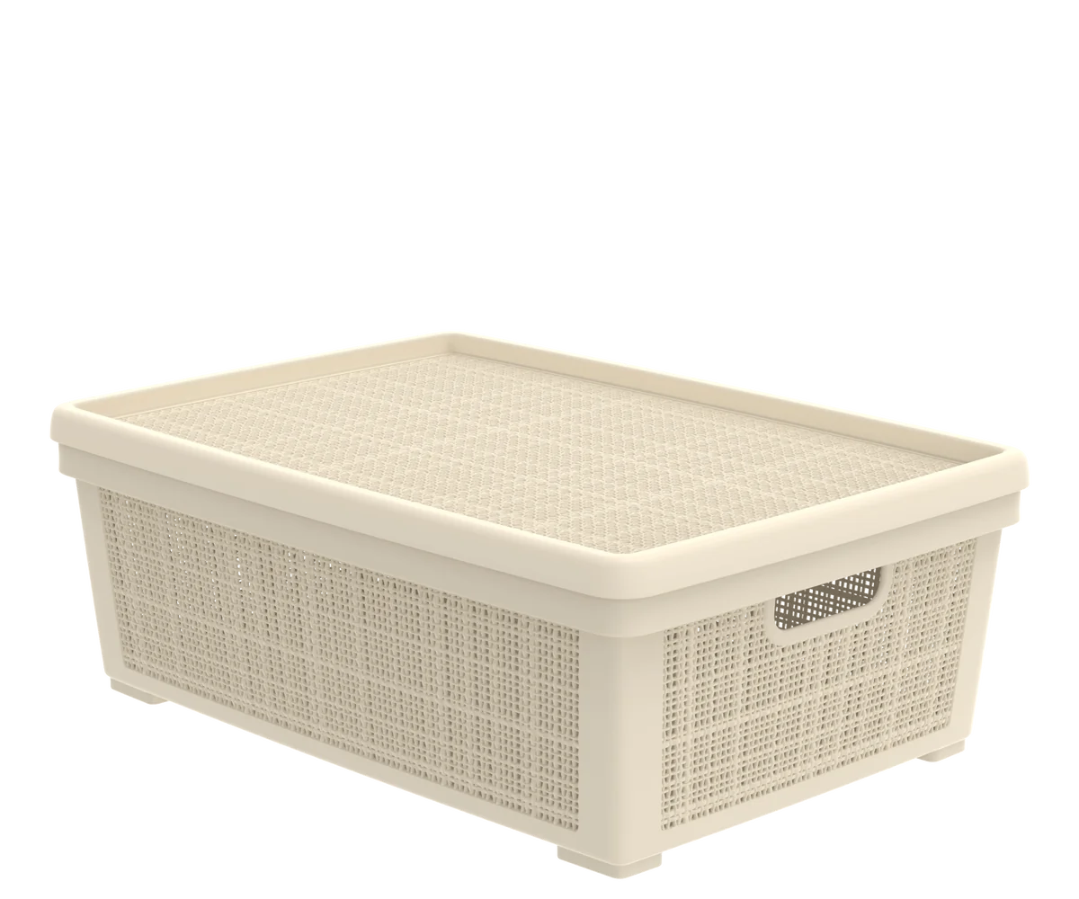 Корзина 35л ЛЕН плетёная для хранения с крышкой 568*400*203 СЛОНОВАЯ КОСТЬ АП 453
