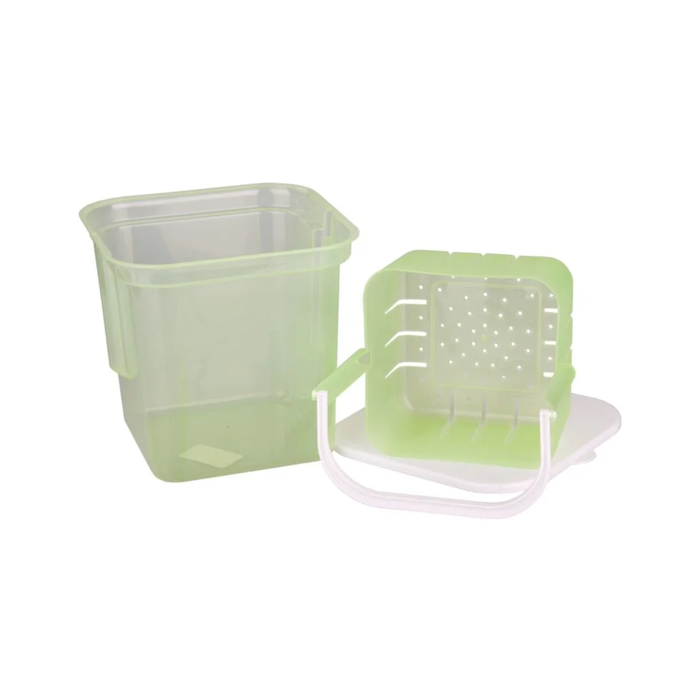 Ёмкость предназначена для домашнего засола различных продуктов: огурцов, помидоров, капусты, грибов, рыбы. В ней также удобно мариновать мясо на шашлык. Благодаря специальному внутреннему дуршлагу и эргономичной ручке можно легко и комфортно вынимать готовые продукты из банки, тем временем рассол остается в ёмкости, а продукты – в дуршлаге. Плотно закрывающаяся крышка препятствует расплёскиванию рассола или маринада при транспортировке. Изделие производится из пищевого пластика, в составе которого нет токсичных веществ и компонентов, вступающих в реакцию с продуктами брожения, поэтому засоленные продукты сохранят свой вкус и превосходное качество.
