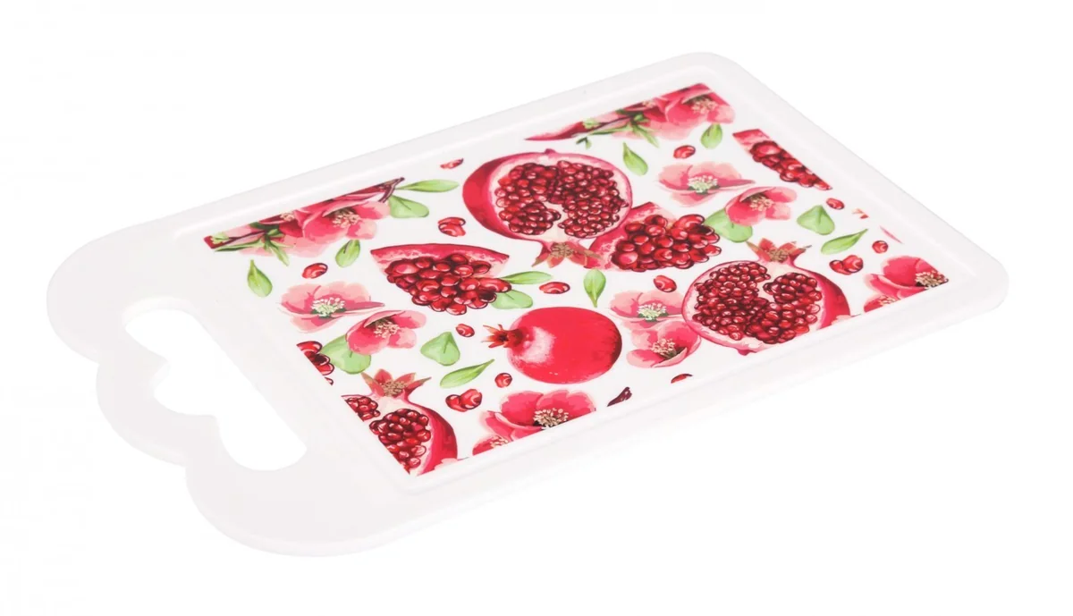 Доска предназначена для нарезания различных продуктов. Размеры изделия позволяют разделывать на нем даже крупные куски мяса и рыбу. Классическая прямоугольная форма и желобки для стока жидкости делают доску практичной и удобной в использовании. На поверхность нанесен яркий несмываемый рисунок по технологии IML. Благодаря рисунку такая доска может использоваться в декоративных целях для создания определенного интерьера кухни. На доске имеется отверстие для удобного захвата и хранения в подвешенном состоянии. Изделие безопасно и химически нейтрально.