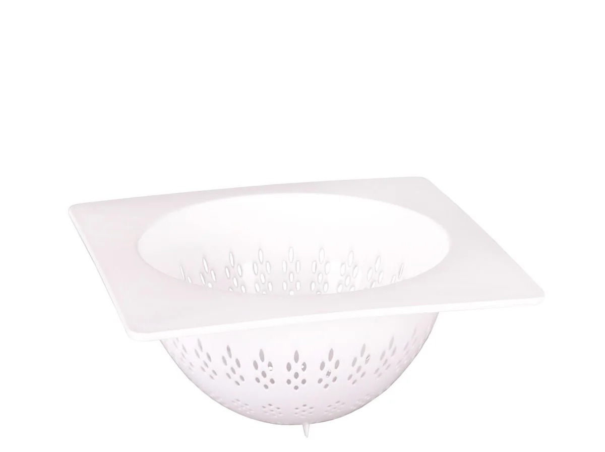 Дуршлаг – необходимый предмет кухонной утвари, который используется для слива жидкости при приготовлении различных продуктов, а также для промывания ягод, фруктов, овощей. Изделие имеет широкий опорный бортик, который удерживает дуршлаг на кастрюле, позволяя удобно и быстро слить воду. Для устойчивости на дне дуршлага имеются выступы-ножки. Данное изделие достаточно компактно, поэтому не займет много места на кухонной полке.