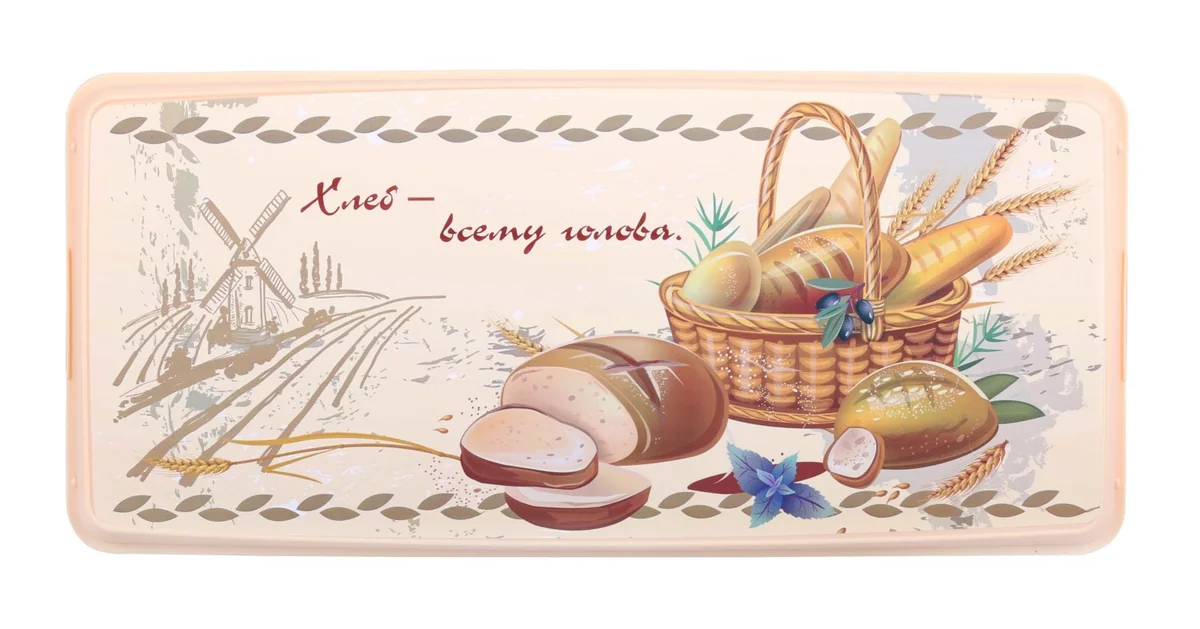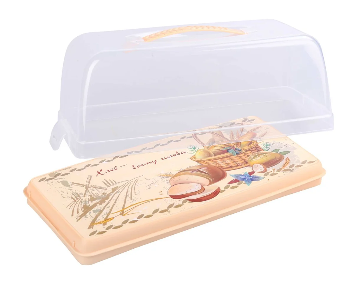 Хлебница «Каравай» состоит из поддона и прозрачной крышки на защелках. Изделие позволяет сохранить свежесть и мягкость хлеба или батона. Яркий рисунок на поддоне не стирается и не деформируется в процессе эксплуатации изделия. Поддон можно использовать для сервировки стола, разместив на нем канапе, булочки или нарезанный хлеб.