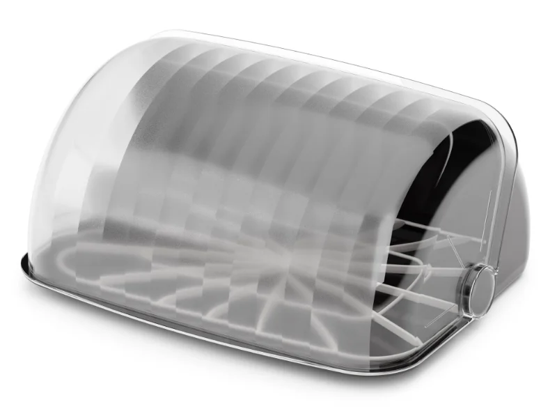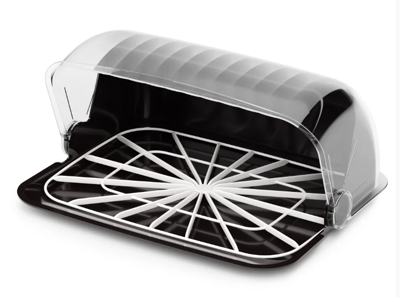 Эргономичная форма хлебницы «Изобилие» дарит комфорт при пользовании изделием и позволяет надолго сохранить мягкость, свежесть и аромат хлеба. Благодаря средним размерам здесь можно разместить одновременно несколько хлебобулочных изделий. Решётка позволяет воздуху циркулировать в хлебнице, чтобы избежать образования плесени на продуктах. Изделие изготовлено из качественного пластика, разрешённого для контакта с пищевыми продуктами.