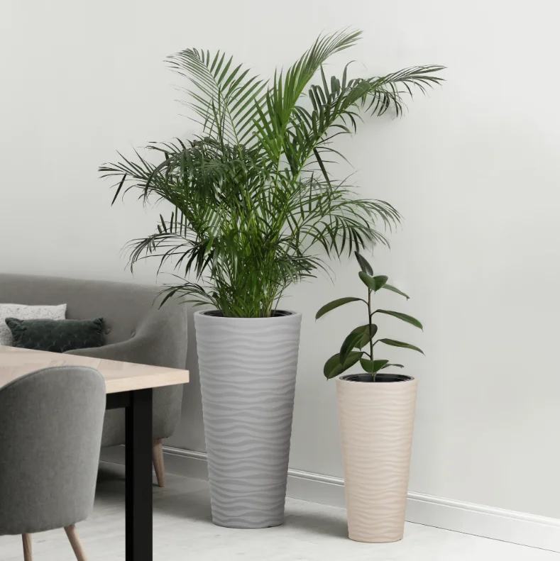 Напольное кашпо для уличных и домашних растений – Оазис. Изделие представлено в трех литражах и нескольких цветовых решениях. Специальная внутренняя вставка облегчит процесс высадки растения и уход за ним. Изделие отличается особой прочностью и морозостойкостью. Внешне кашпо напоминает песчаные дюны, посреди которых расположился цветочный Оазис. Данный дизайн отлично впишется в любой интерьер.