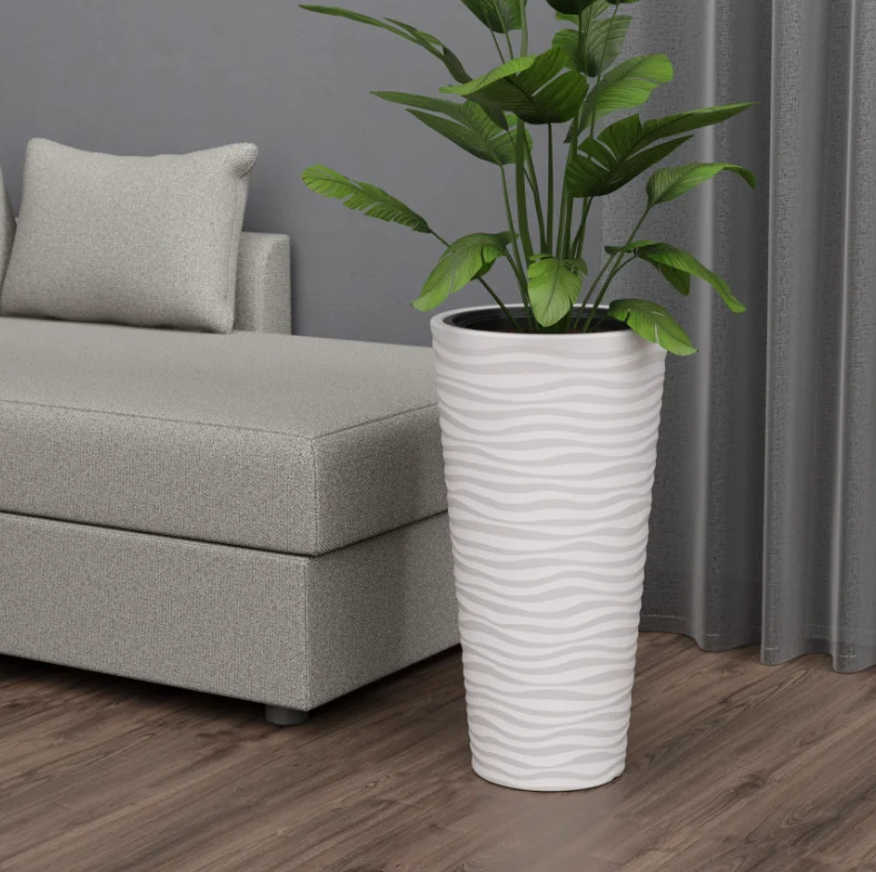 Напольное кашпо для уличных и домашних растений – Оазис. Изделие представлено в трех литражах и нескольких цветовых решениях. Специальная внутренняя вставка облегчит процесс высадки растения и уход за ним. Изделие отличается особой прочностью и морозостойкостью. Внешне кашпо напоминает песчаные дюны, посреди которых расположился цветочный Оазис. Данный дизайн отлично впишется в любой интерьер.