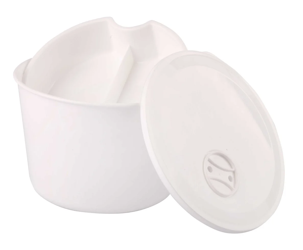 Вместительный контейнер непременно пригодится тем, кто носит обеды с собой на работу или учебу. В нем удобно не только транспортировать еду, но и разогревать ее в СВЧ. Специальный клапан в открытом режиме позволяет греть блюдо под крышкой, что в свою очередь защищает микроволновую печь от загрязнения. Для удобства данная ёмкость имеет съемный лоток, разделенный на два отсека. Крышка плотно закрывает контейнер и легко снимается благодаря специальному язычку.