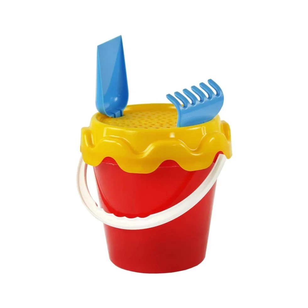 Набор станет отличным подарком для ребенка. Малыш с удовольствием будет играть на свежем воздухе. Во время игры ребенок развивает мелкую моторику рук, координацию движений и воображение. В набор входит ведёрко, сито, лопатка и грабли. Все изделия выполнены из безвредного пластика высокого качества. Легкий вес и небольшой размер позволят малышу без труда переносить воду и песок, лепить замки и многое другое. Весь набор легко промывается под проточной водой и не выгорает на солнце.