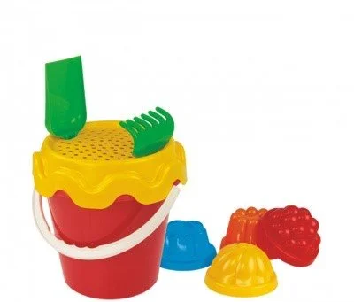 Набор станет отличным подарком для ребенка. Малыш с удовольствием будет играть на свежем воздухе. Во время игры ребенок развивает мелкую моторику рук, координацию движений и воображение. В набор входит ведёрко, сито, лопатка и грабли. Все изделия выполнены из безвредного пластика высокого качества. Легкий вес и небольшой размер позволят малышу без труда переносить воду и песок, лепить замки и многое другое. Весь набор легко промывается под проточной водой и не выгорает на солнце.