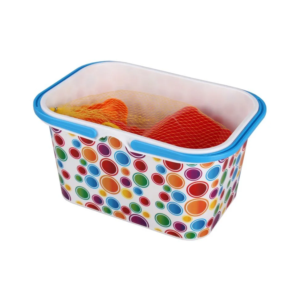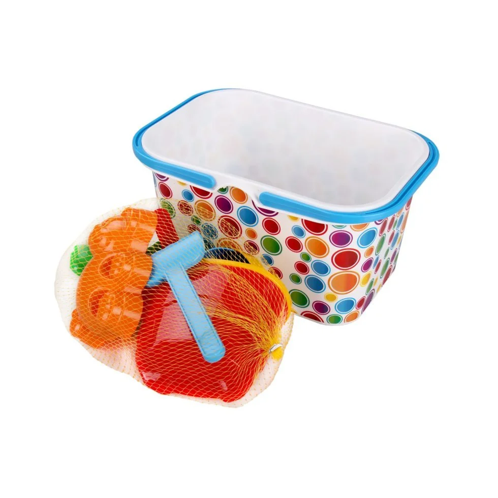 Набор станет отличным подарком для ребенка. Малыш с удовольствием будет играть на свежем воздухе. Во время игры ребенок развивает мелкую моторику рук, координацию движений и воображение. Детали набора улучшают цветовосприятие у детей. В набор входит лейка «Мини» 0,5л, лопатка, грабли и формы для лепки. Все предметы упакованы в красивую корзинку с удобными ручками для переноски. Изделия выполнены из безвредного пластика высокого качества. Легкий вес и небольшой размер лейки позволят малышу без труда переносить воду и песок, лепить замки. Весь набор легко промывается под проточной водой и не выгорает на солнце.